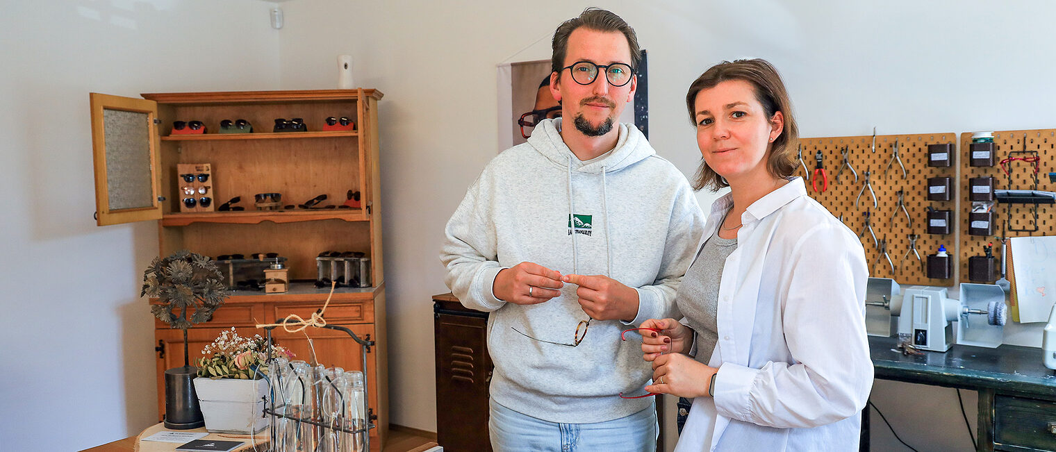 Alte Brillen aufzuarbeiten und ihnen ein neues Leben zu schenken, ist für das Optiker-Ehepaar aber nicht nur in dem Hilfsprojekt ein Thema, sondern der zentrale Kerngedanke, der hinter der »Brillenmodelei« steht. Das Geschäft, das sich in den renovierten Räumlichkeiten einer ehemaligen, stadtbekannten Tabledance-Bar befindet, wurde mitten im Corona-Lockdown 2020 eröffnet. »Unser Traum war ein eigenes Geschäft, mit einem Konzept, hinter dem wir voll und ganz stehen können und das es in dieser Form noch nicht gab«, erzählen die beiden Optikermeister, die sich während der gemeinsamen Meisterschulzeit in Niedersachsen kennengelernt hatten. »Bei unserem letzten gemeinsamen Arbeitgeber wurden so viele Brillen einfach in den Müll geschmissen, das wollten wir anders machen«, sagt Jana Hoffmann-Kirchner. So entstand die »Brillenmodelei«: »Wir wollen ein nachhaltiger Optiker sein. Ein Ort, an dem Brillen repariert werden, die Modelle aus Deutschland kommen, sich Kinder wohl fühlen und wo möglichst wenig Müll produziert wird«, sagt die 38-Jährige. Für diesen Ansatz und ihr soziales Engagement wurde die Optikermeisterin im vergangenen Jahr mit dem Sächsischen Gründerinnenpreis ausgezeichnet. Sie sei ein Vorbild für innovative und verantwortungsvolle Unternehmensführung, hieß es in der Jury-Begründung.