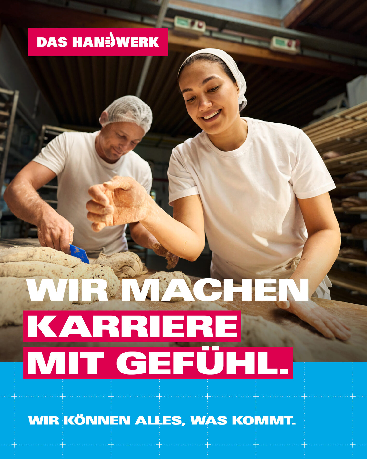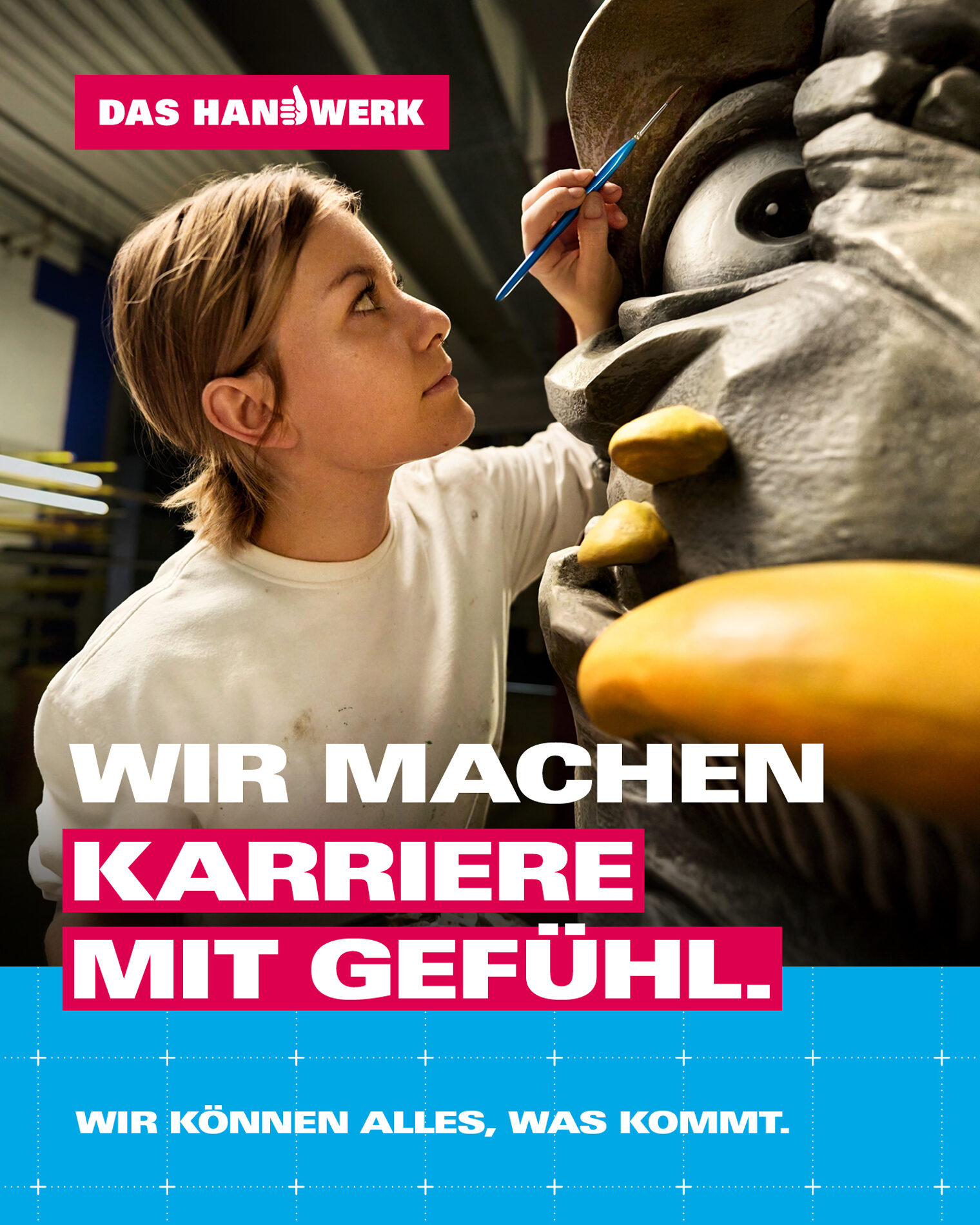 In TV-Spots, im Radio und auf Streaming-Plattformen wird ebenso für die Karriere im Handwerk geworben wie auf Plakaten und Anzeigen in reichweitenstarken Online- und Printmedien. Plattformen wie Instagram und TikTok dürfen ebenfalls nicht fehlen.