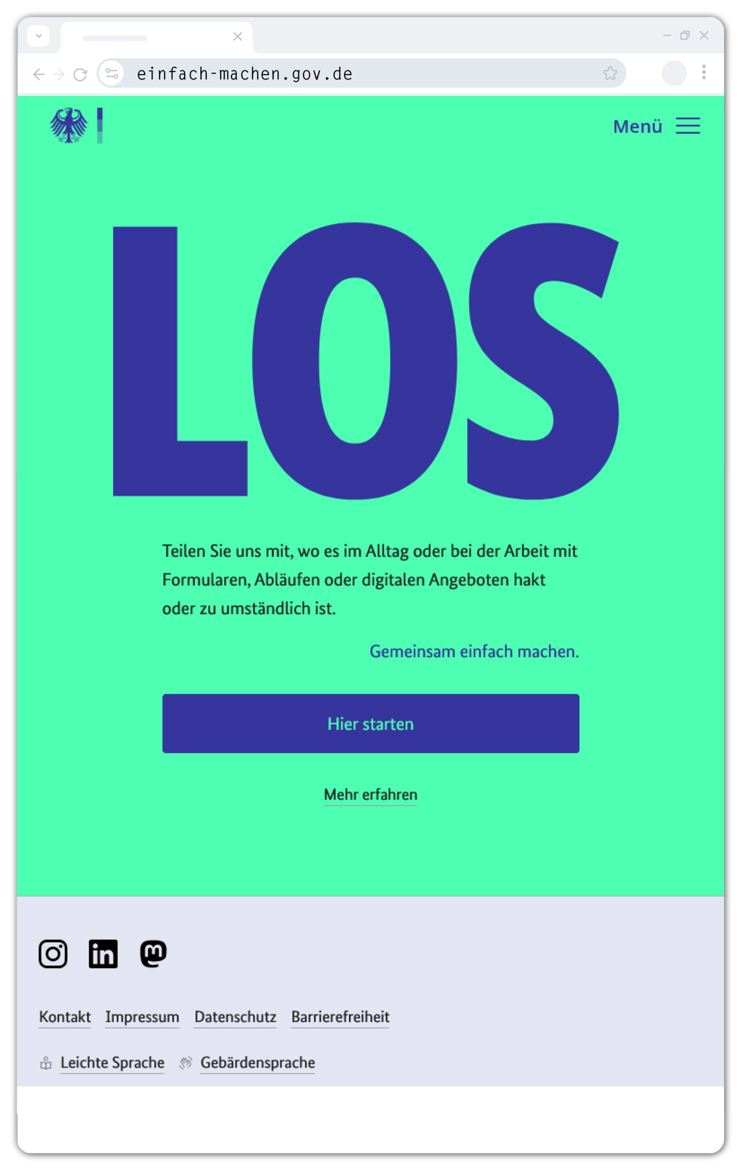 Um Bürokratie abzubauen, muss man wissen, an welchen Stellen sie am meisten hemmt. Hier setzt die Bundesregierung mit dem Bürokratiemeldeportal einfach-machen.gov.de an. Unternehmen können Rückmeldung zu unsinnigen Regelungen geben und Vorschläge für schlankere Prozesse machen.